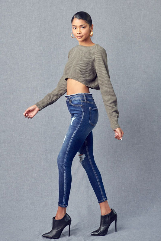 OVERSIZED BELL SLEEVE CABLE KNIT SWEATER