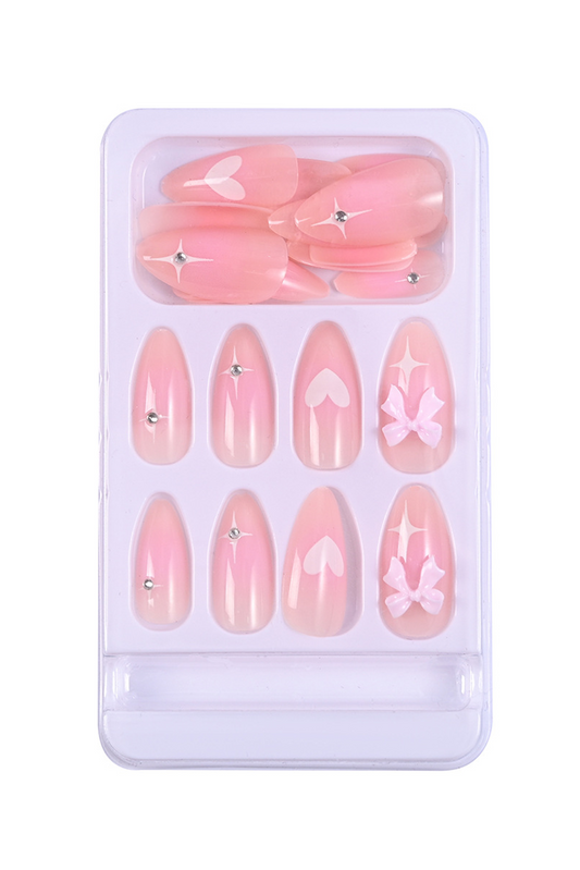 Pink Gradient Bow And Heart Decor Press On Nails