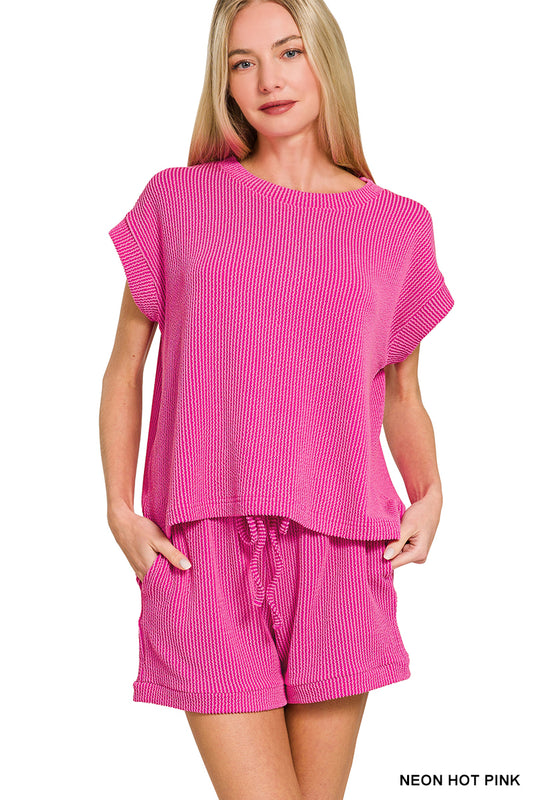 RAISED RIB TOP & SHORTS SET