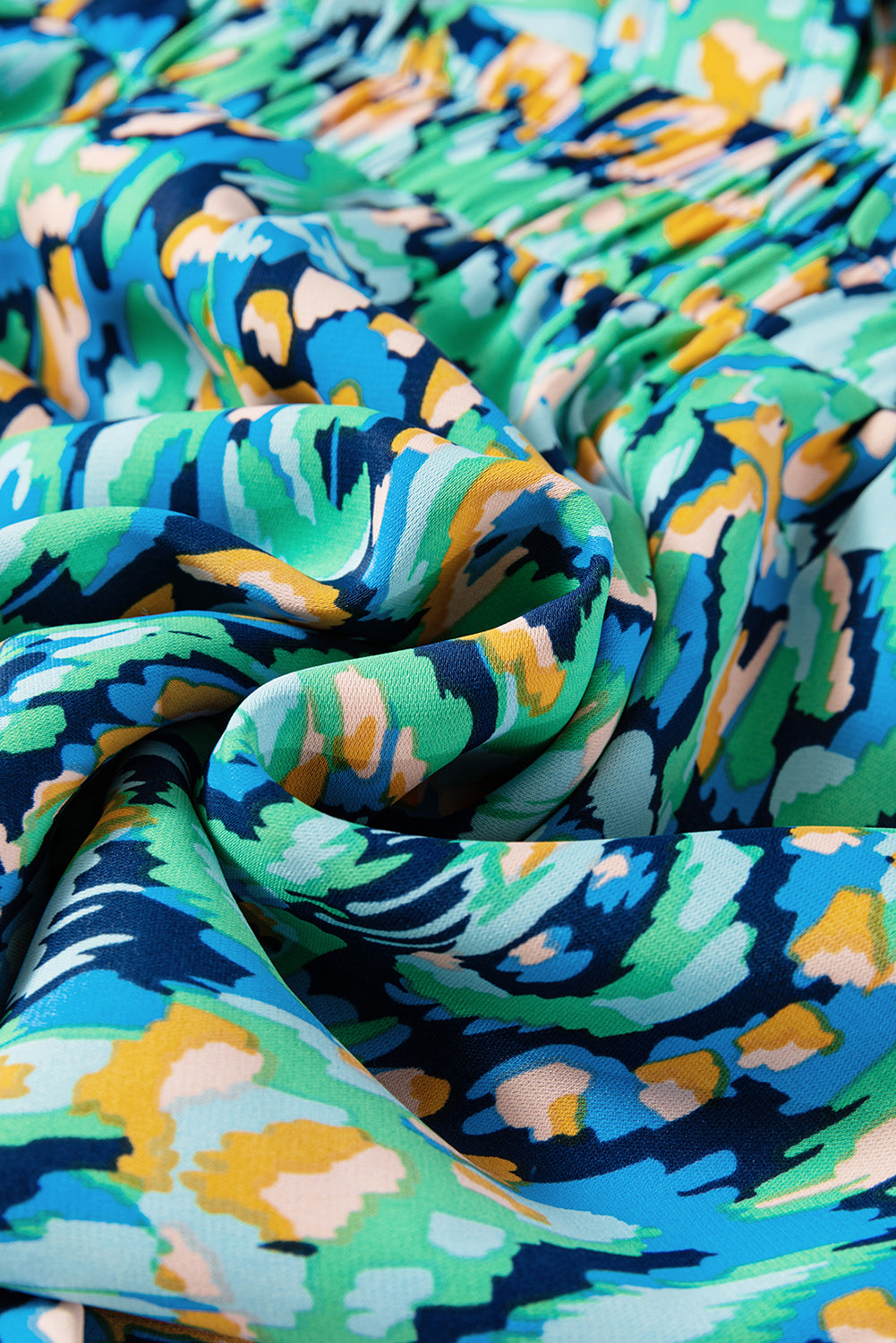 Green Abstract Print Batwing Sleeve V Neck High Waist Romper