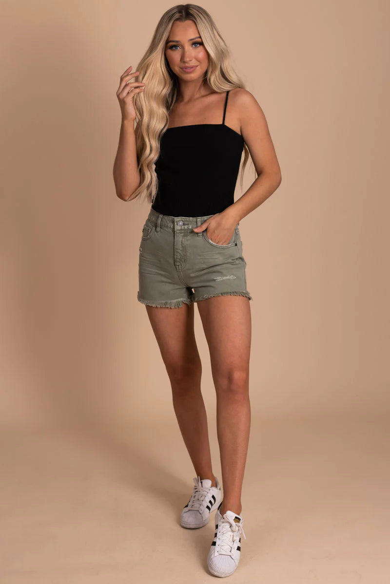 HIGH RISE FRAYED HEM DENIM SHORTS