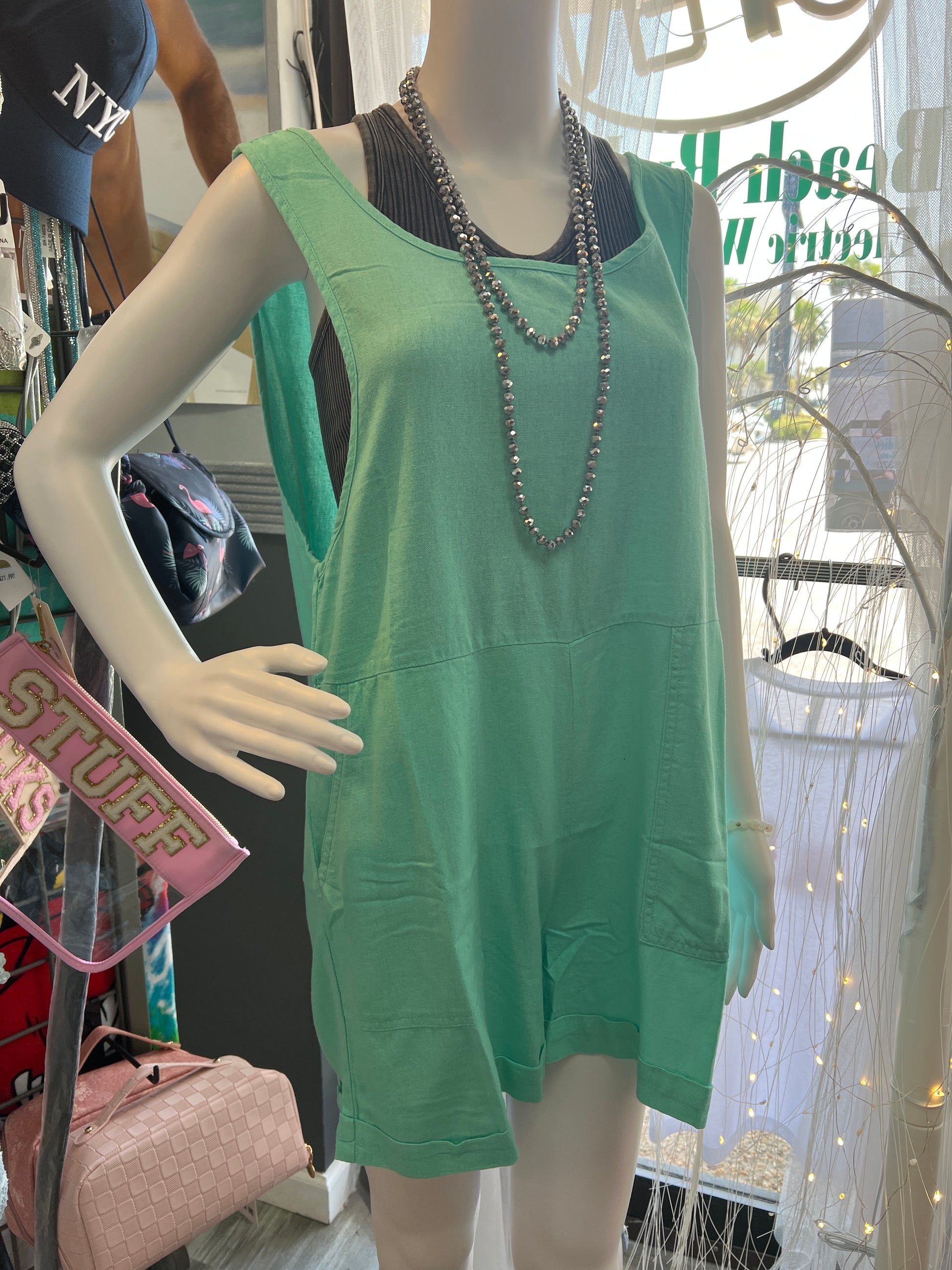 LINEN SLEEVELESS ROMPER WITH POCKETS