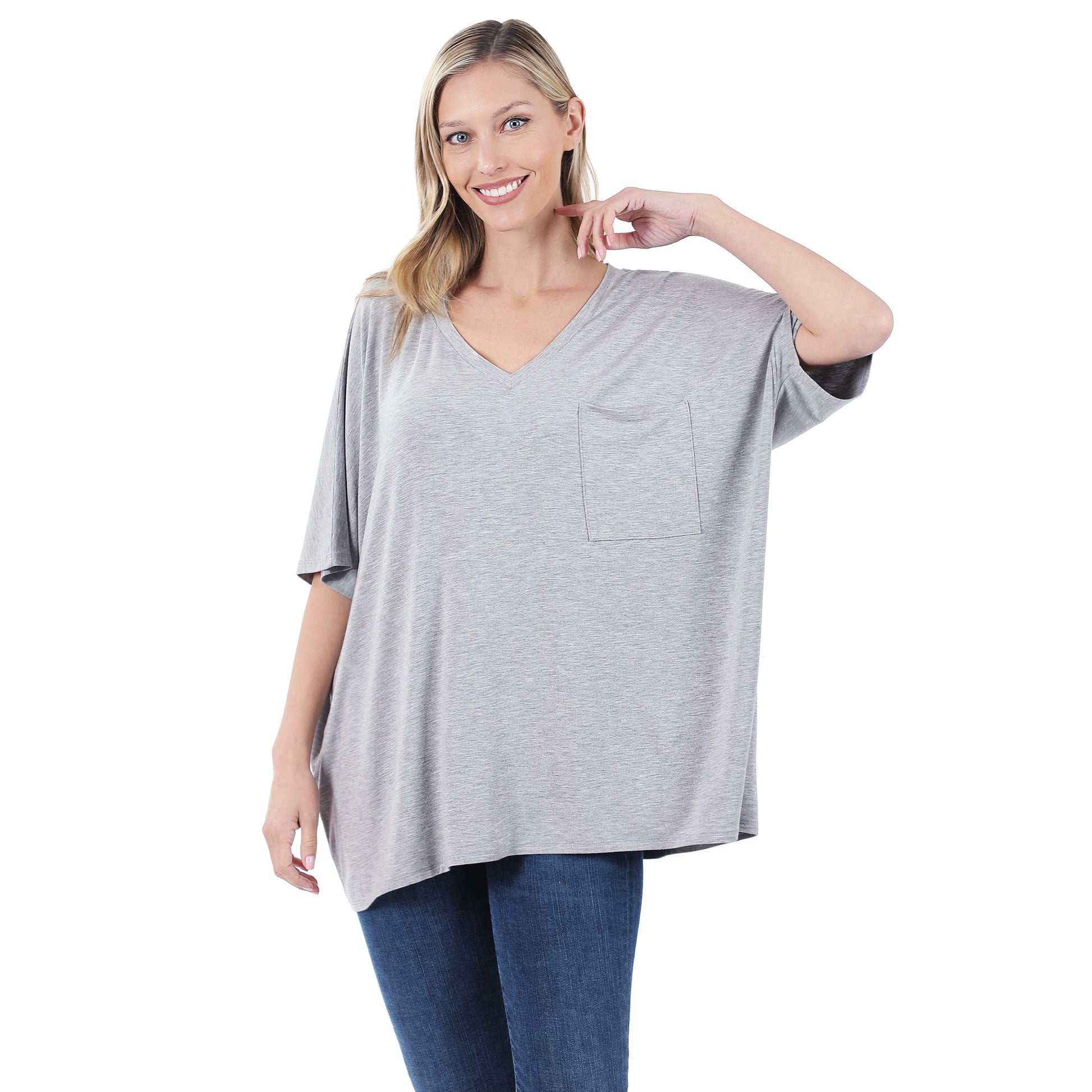 Lux Rayon Oversized V-Neck Font Pocket Top