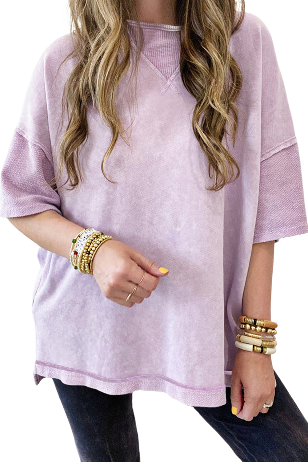 Orchid Petal Mineral Wash Exposed Seam Drop Shoulder Oversized Tee
