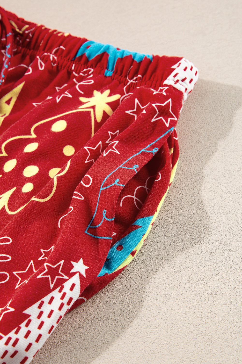 Rose Christmas Tree Print V Neck Tee and Pants Lounge Set