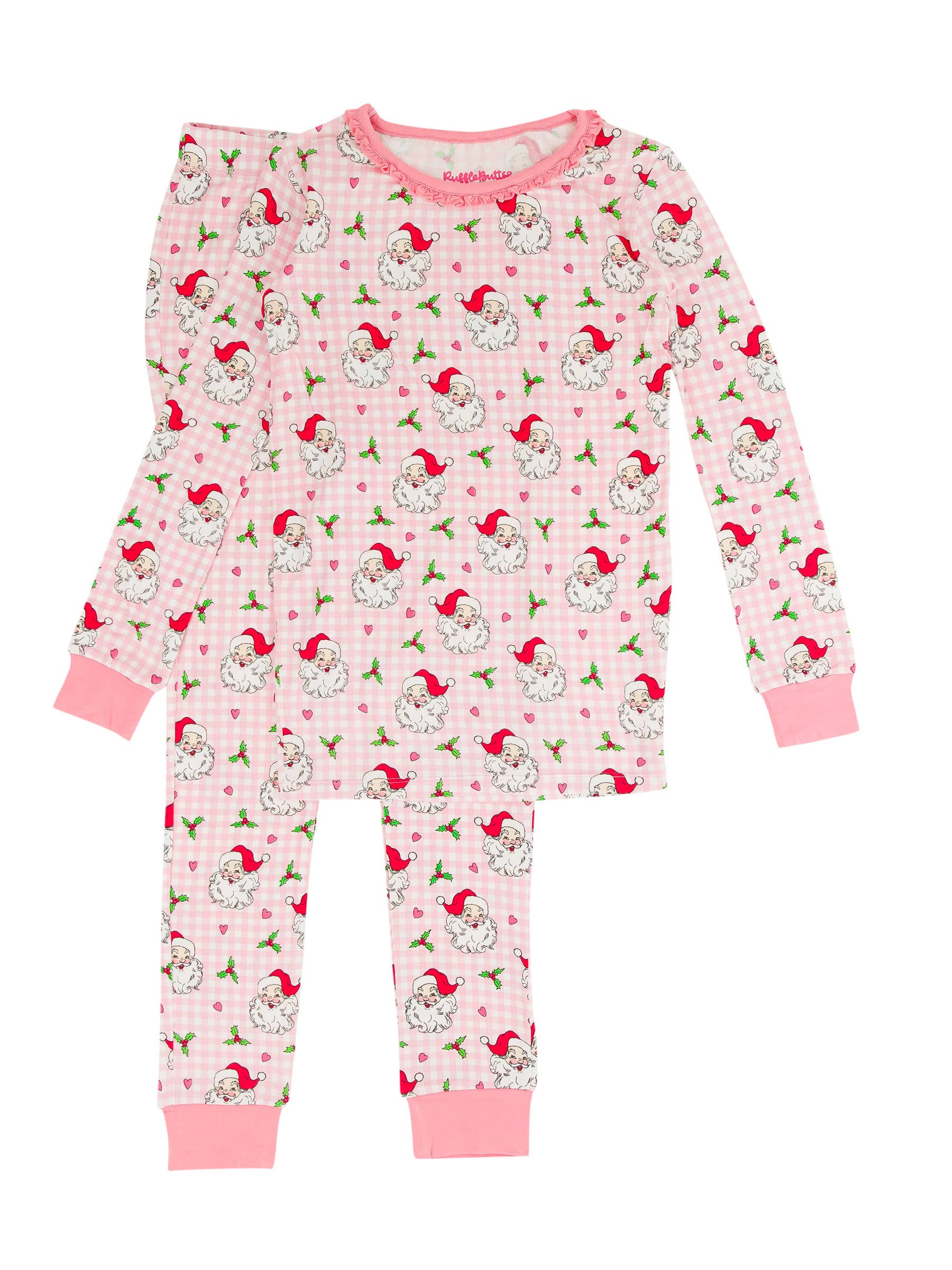 SoftSnooze™ Girls Bamboo Viscose Pink Dear Santa Ruffle Long Sleeve Pajama Set