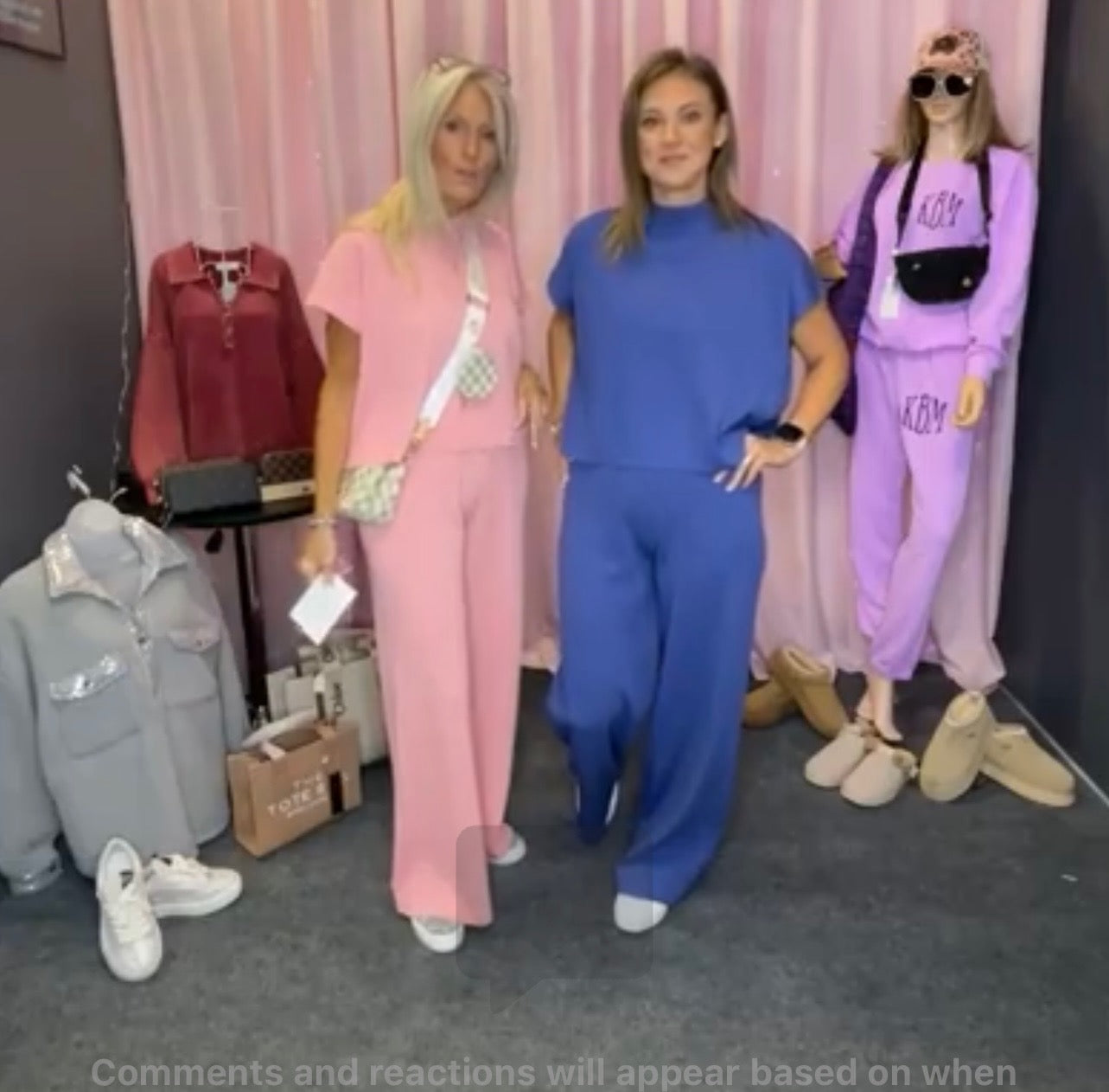 VISCOSE SWEATER SHORT SLEEVE TOP & PANTS 2 PIECES SET