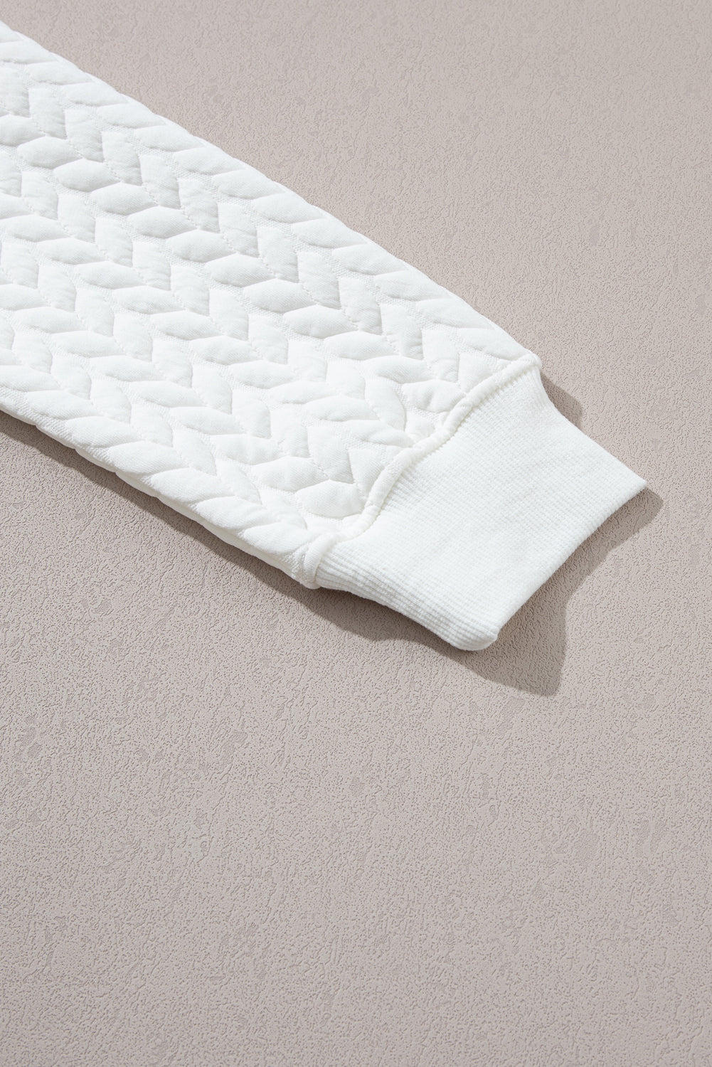 White XOXO Chenille Letter Patch Quilted Sweatshirt